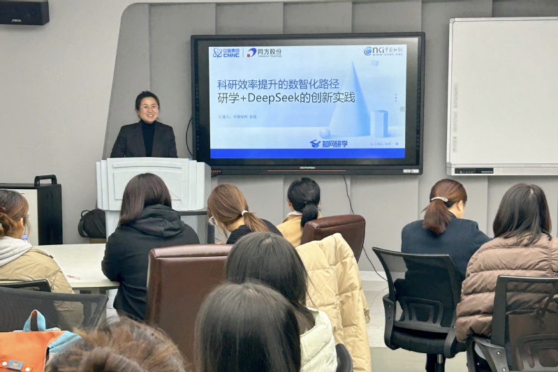 讲座中,孙瑶结合丰富的学术服务实践案例,围绕“选题利器:AI辅助分析海量学术资源”“阅读升级:AI快速突破数字阅读困境”“写作引擎:AI高效引用提升写作效率”三大核心模块展开系统讲解,全方位展示了AI如何构建“研读-创作-修订”的闭环服务,帮助科研人员从繁琐事务中解放出来,专注创新思考。 互动环节中,师生们围绕“AI生成内容的边界与学术合规性”“知网研学应用于不同学科领域的适配性与使用技巧”等问题积极提问,孙瑶结合具体学科案例逐一细致解答,现场交流氛围热烈。师生们纷纷表示,要以开放、包容、审慎的心态学习、掌握AI工具的使用技巧,为今后开展课题研究赋能新思路。