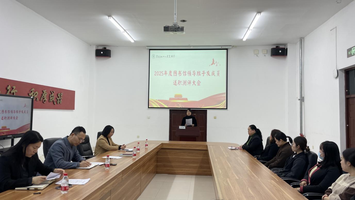 | 1月7日下午,图书馆在121会议室召开2025年度领导班子及成员述职测评会议,全面总结回顾2025年工作开展情况。图书馆党政领导班子成员及全体馆员参加会议,组织部副部长王振华列席旁听。会议由图书馆党总支书记沈鸿主持。 述职环节中,沈鸿代表图书馆领导班子进行述职,领导班子成员分别围绕思想建设、履行职责、突出业绩与创新工作等方面展开汇报,系统梳理了过去一年的工作成果与特色亮点,深入剖析了当前存在的不足与挑战,明确了下一步的工作目标与改进方向。 沈鸿在总结中指出,年度述职既是对个人工作的总结,也是对队伍凝聚力与战斗力的集中展示。她对全体馆员提出三点要求:一是要坚持学用结合,聚焦主责主业,始终将服务师生放在首位,把工作做深做实;二要持续提升能力,积极探索新形势下工作的新方法、新思路、新路径,着力破解工作中的难点堵点;三是强化责任担当,党员干部要以身作则,充分发挥先锋模范作用,带领全体馆员共同奋进,在新时代新征程上展现新作为,共同推动图书馆工作迈向新台阶。 述职结束后,与会人员进行了民主测评。
